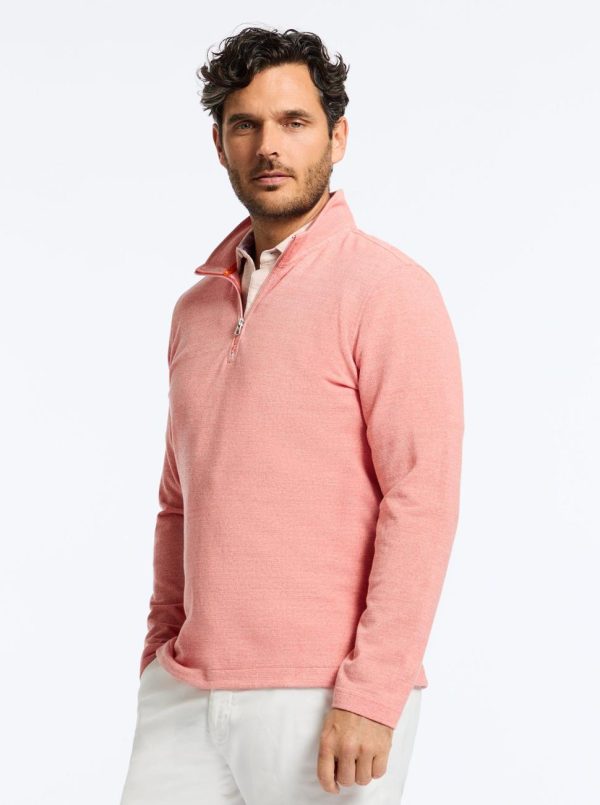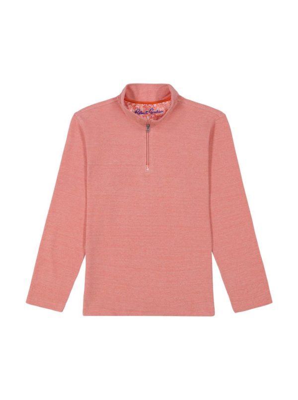 This lightweight basic combines style and comfort. Made from pique heather, this quarter zip features subtle details to add a hit of style. A pop of color at the zipper echos the pattern peeking out from the zipper garage, side vents, and back yoke. This piece is perfect for pairing with your favorite denim.