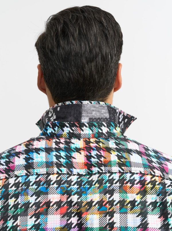 Bold neon hues turn this gingham-style shirt into an unexpected delight. Notice how the stretched satin is the perfect canvas for vibrant color. Layer under a blazer for a dressed-up look, or wear solo with dark wash denim for a more casual vibe.