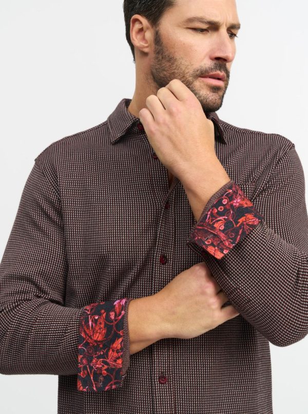 - Contrast print at inside collar and cuff