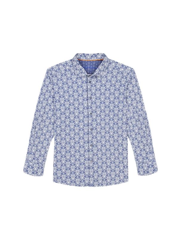 - Contrast print at collar and cuff