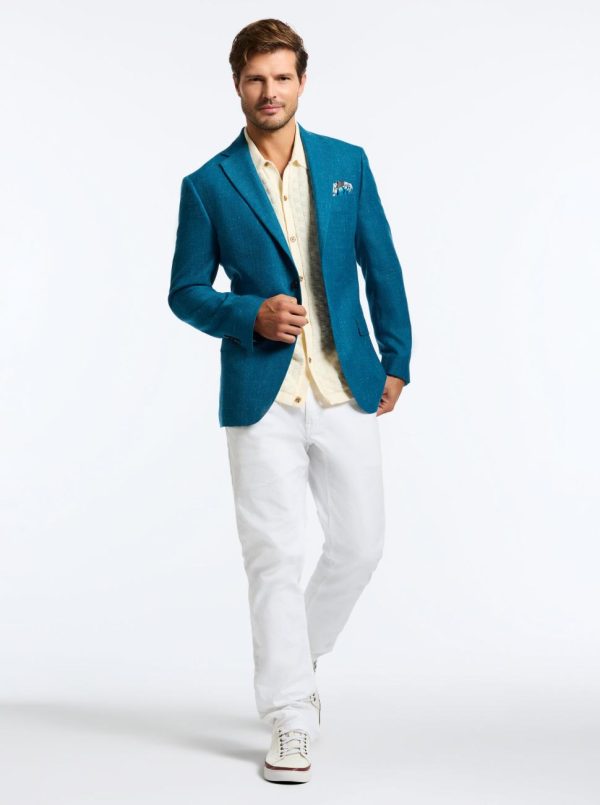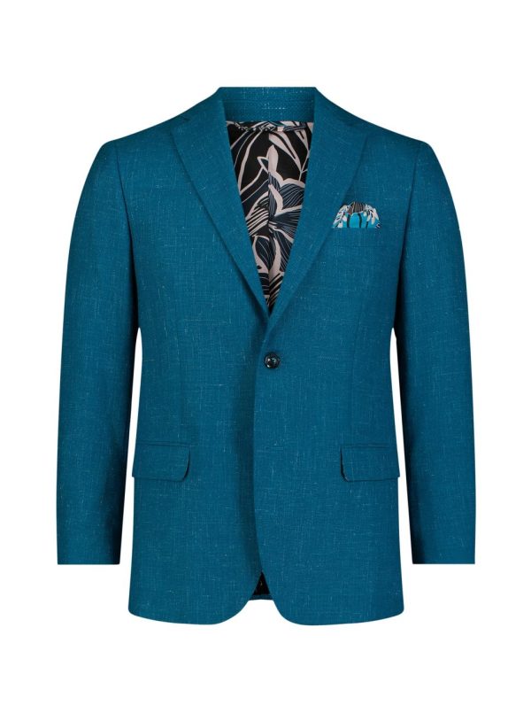Surprise and delight in the Fallon blazer. The bold color of this wool-blend style instantly draws the eye. Notice the stylish jacquard print at the pocket square and interior lining. Layer over a button down for an elegant combo or wear it with your favorite tee for a more laid-back feel.