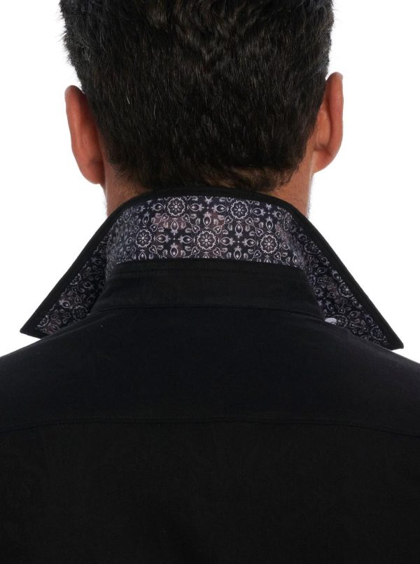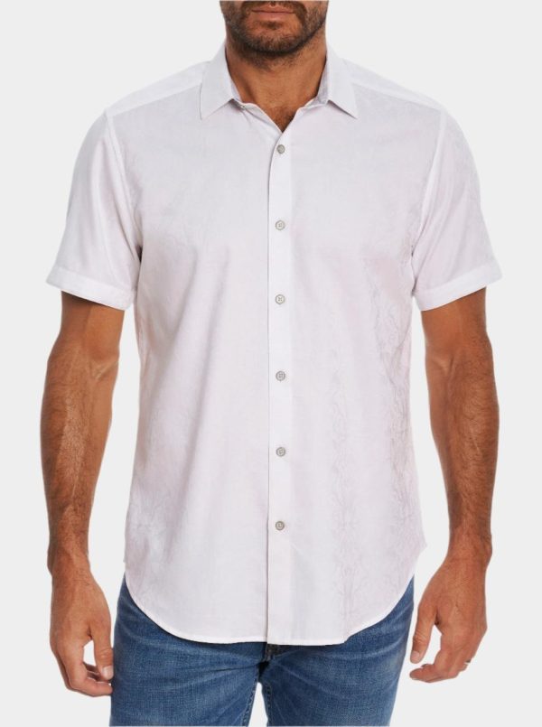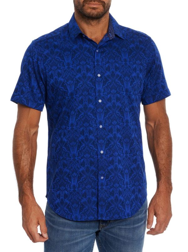 You’ll love this RG best seller and Collector favorite. Now discover our newest essential jacquard, The Highland. A damask motif is celebrated on this stretch cotton jacquard short sleeve button down shirt. Flip the collar for a contrast print.