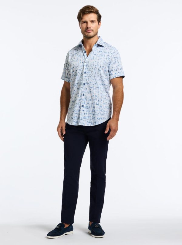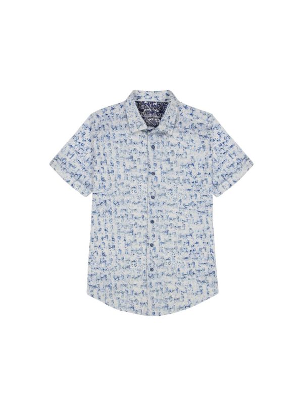 A soft blue and white tribal print elevates a classic button down. You’ll love how this stylish shirt has that goes-with-anything vibe. Pair with khakis or denim to complete the look. Note: This style is slightly fitted. It is tailored for a closer-to-the-body fit, with all the RG personality you expect.