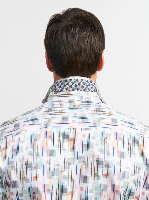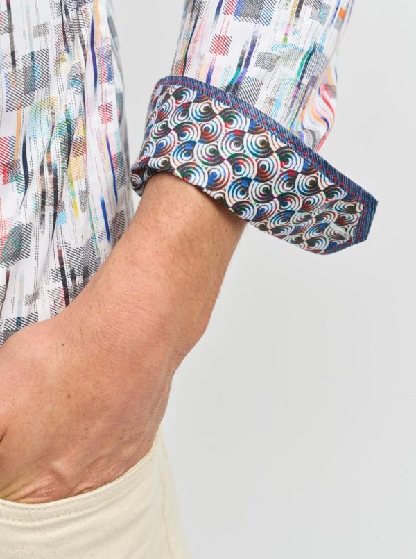Ditch the ordinary and reach for a button down with retro style. You’ll love this motion fabric in nylon stretch in a vibrant print. Pair with dark wash denim to complete your look.