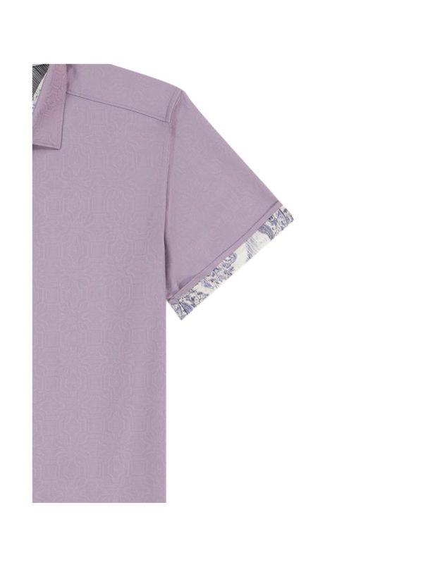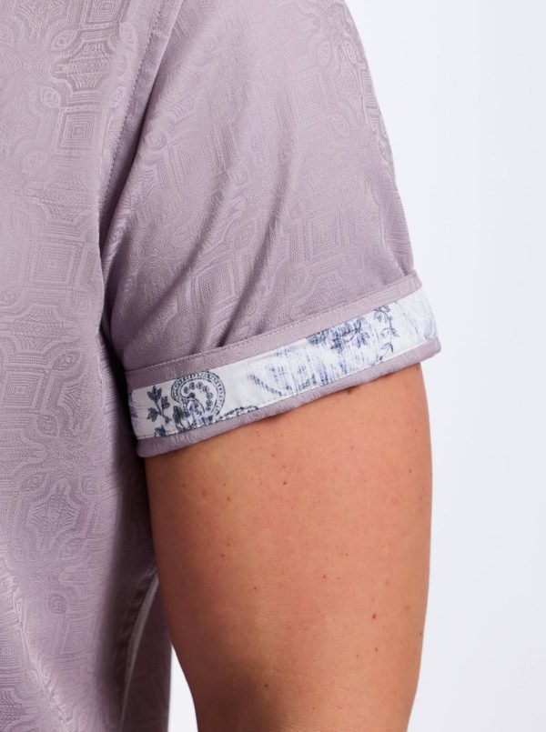 Introducing our new tonal jacquard in an array of fashion-forward colors. This dapper button down is this season’s wardrobe must-have. Notice the dimensional geometric pattern and contrast print at the collar and sleeve. Layer this stylish basic under your favorite blazer and pair with dark wash denim.