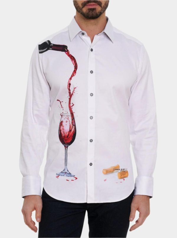Can’t get your fill of Robert Graham’s #DrinksSeries? Well pour another one with this pinot noir wine print stretch cotton long sleeve sport shirt complete with corkscrew detail.