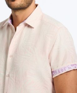 Your classic button down gets the royal treatment with an allover palm pattern that makes a quiet statement. A bold contrast print at the inside collar and sleeves creates unexpected noise. You’ll love how the breezy fabric keeps you cool no matter where the day takes you.