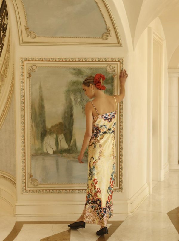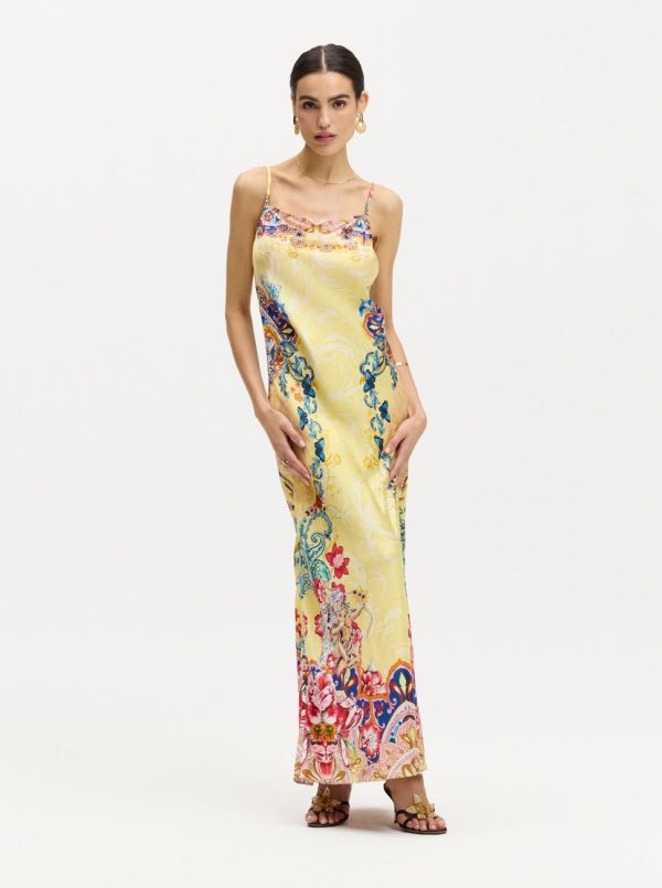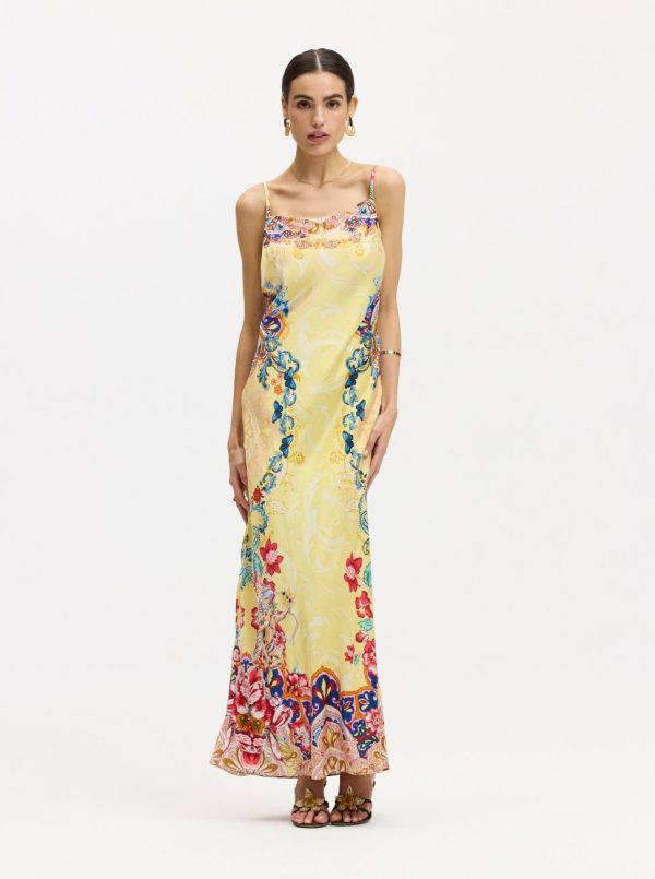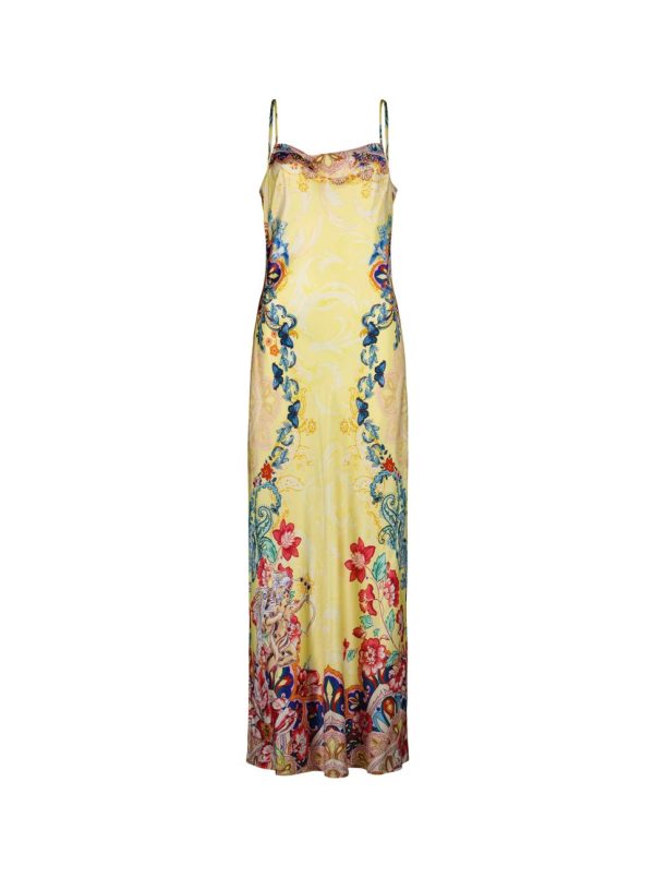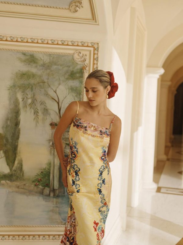 Turn heads at your next event in the Kaia dress. A sunshine yellow hue is accented by vivid florals to elevate this slip dress silhouette. Adjustable straps make it the perfect fit. Dressed up or down, this dress is a stunning choice.
