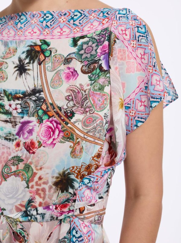Exude confidence in this flirty scarf dress. The drapey fabric is delicately tacked at the shoulders, opening up the neckline and sleeves to bare just the right amount of skin up top. Cinch the self-tie waist to create a flattering silhouette, or remove it for a more casual vibe. Dressed up or down, this standout style is sure to turn heads.